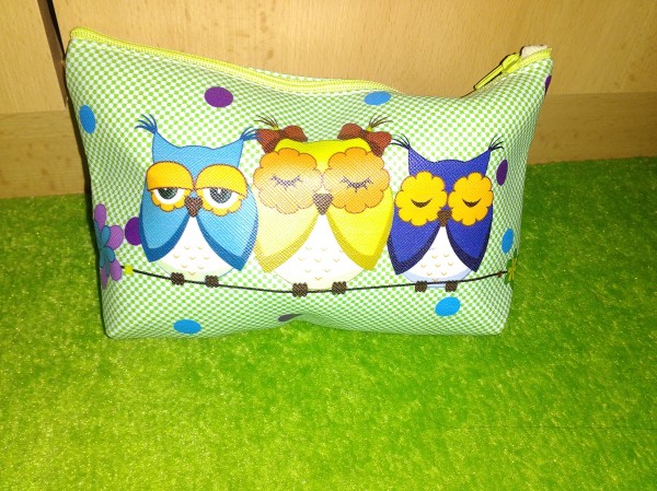 -----moje foto----Jak můžete vidět na tašce přesahuje barva zelená (zelené pozadí) a jsou na ní tři sovičky.